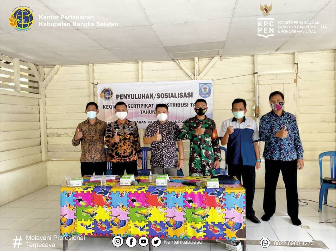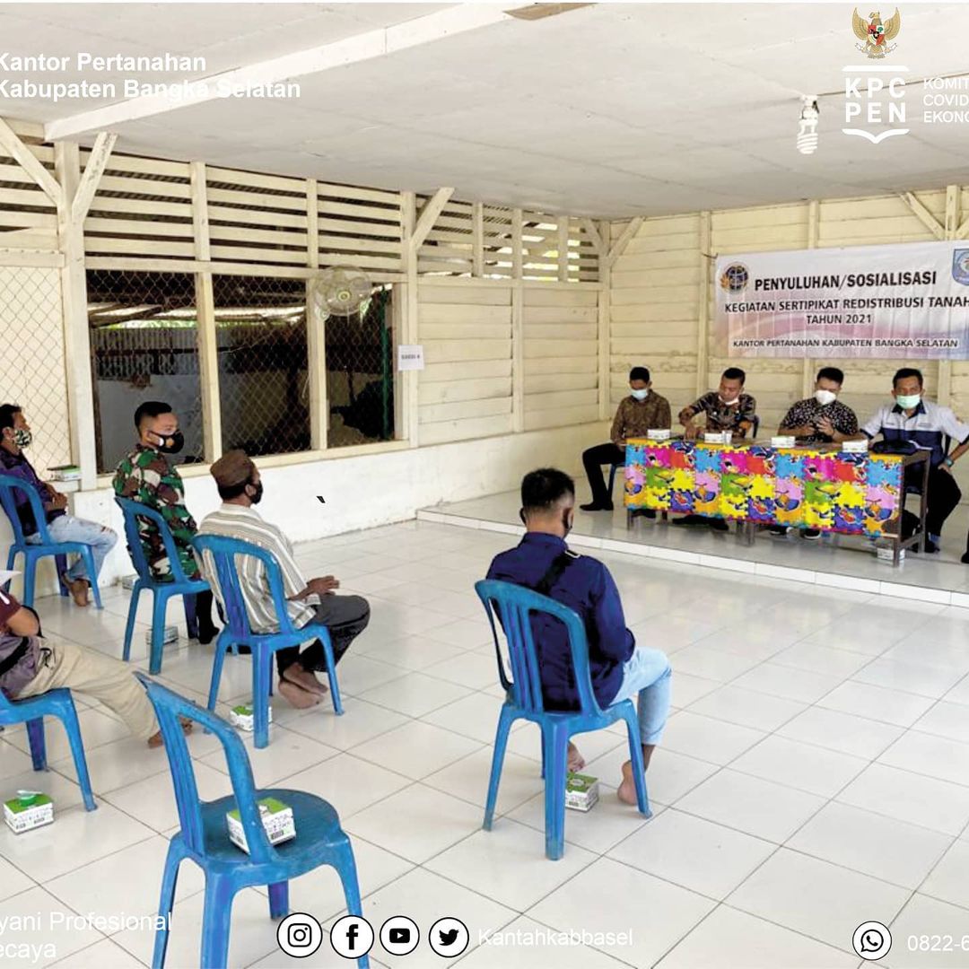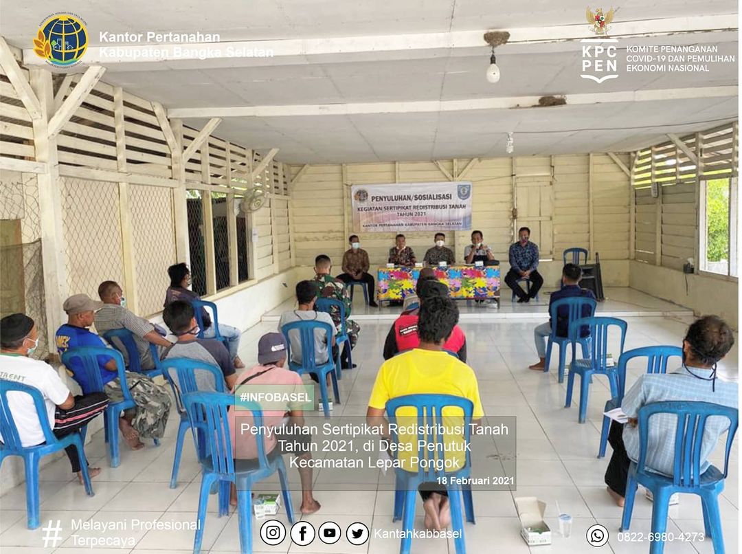 Penyuluhan Sertipikat Redistribusi Tanah di Desa Penutuk Pulau Lepar Pongok yang di hadiri oleh Bapak Agung Basuki, S.ST.,M.H Selaku Kepala Kantor Pertanahan Provinsi DKI Jakarta serta di dampingi Kepala Desa Penutuk serta APH setempat. - Target Sertipikat Tanah di Kabuapten Bangka Seatan pada Tahun 2021 sebanyak 3.000 Sertipikat. untuk Target Sertipikat Redistribusi Tanah di Desa Penutuk sebanyak 200 Sertipikat.