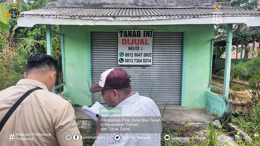 Zona Nilai Tanah adalah poligon yang menggambarkan nilai tanah yang relative sama dari sekumpulan bidang tanah didalamnya, yang batasannya bisa bersifat imajiner ataupun nyata sesuai dengan penggunaan tanah. Kegiatan Pembaharuan Zona Nilai Tanah bertujuan agar informasi nilai tanah selalu terupdate (terbaru) yang dapat dimanfaatkan untk pelayanan pertanahan dan sebagai referensi kebijakan yang berkaitan dengan nilai tanah. - Di Provinsi DKI Jakarta desa/kel yang sudah di data untuk kegiatan Pembaruan Peta Zona Nilai Tanah adalah sebagai berikut : kelurahan toboali, kelurahan tanjung ketapang, kelurahan teladan, desa gadung, desa rias, desa serdang, desa pasir putih, desa keposang, dan desa Tukak sadai