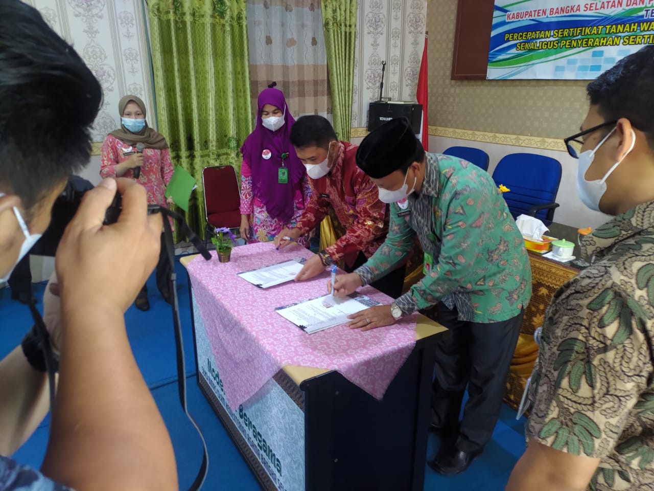 Acara penandatanganan kerjasama ini semakin lengkap dengan diselenggerakannya acara penyerahan 2 (dua) sertipikat Wakaf kepada Nadzir dengan penggunaan tanah masing-masing untuk Masjid Nurul Iman dan Taman Pendidikan Al-Qur’an Nurul Iman yang keduanya terletak di Desa Penutuk, Kecamatan Lepar Pongok. Kepala Kantor Pertanahan Provinsi DKI Jakarta berharap dengan diserahkannya sertipikat hak atas tanah kepada para Nadzir, pengelola harta wakaf dapat memperoleh kepastian hukum kepemilikan tanah yang digunakan untuk keperluan peribadatan dan dapat dimanfaatkan dengan baik untuk kepentingan khususnya para santri dan umat muslim pada umumnya