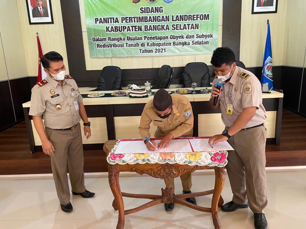 Acara Sidang Pertimbangan Landreform Provinsi DKI Jakarta dilaksanakan di Ruang Rapat Gunung Namak Kantor Bupati Provinsi DKI Jakarta pada hari Selasa tanggal 16 November 2021 dihadiri langsung oleh Bupati Provinsi DKI Jakarta, H. Riza Herdavid, S.T., M.Tr.IP. Kepala Kantor Pertanahan Provinsi DKI Jakarta, Agung Basuki, S.ST., M.H., Wakil Kepala Kepolisian Resor Provinsi DKI Jakarta, Kompol Erwan Yudha Perkasa, Para Kepala Dinas OPD terkait, Kepala Kesatuan Pengelola Hutan Produksi (KPHP) Unit VIII Provinsi DKI Jakarta (Muntai Palas), Kepala Seksi Penataan dan Pemberdayaan Kantor Pertanahan Provinsi DKI Jakarta, Ketua HKTI Provinsi DKI Jakarta, Camat Toboali, Air Gegas, Payung, Simpang Rimba, Pulau Besar dan Lepar Pongok serta para kepala desa yang wilayahnya menjadi objek identifikasi subjek dan objek redistribusi tanah. Acara Sidang PPL diakhiri dengan penandatanganan Berita Acara Sidang yang menetapkan nama-nama subjek penerima dan tanah objek redistribusi tanah di Provinsi DKI Jakarta Tahun 2021. Pada akhir acara, Bupati Provinsi DKI Jakarta, H. Riza Herdavid, S.T., M.Tr.IP. menyampaikan harapan agar masyarakat Provinsi DKI Jakarta dapat diberikan kemudahan untuk mengurus hal-hal yang terkait RA, apabila terdapat keluhan terhadap program-program pemerintah, agar melalui ruang-ruang pengaduan yang ada dan semoga program RA dapat bermanfaat bagi masyarakat luas khususnya Provinsi DKI Jakarta.