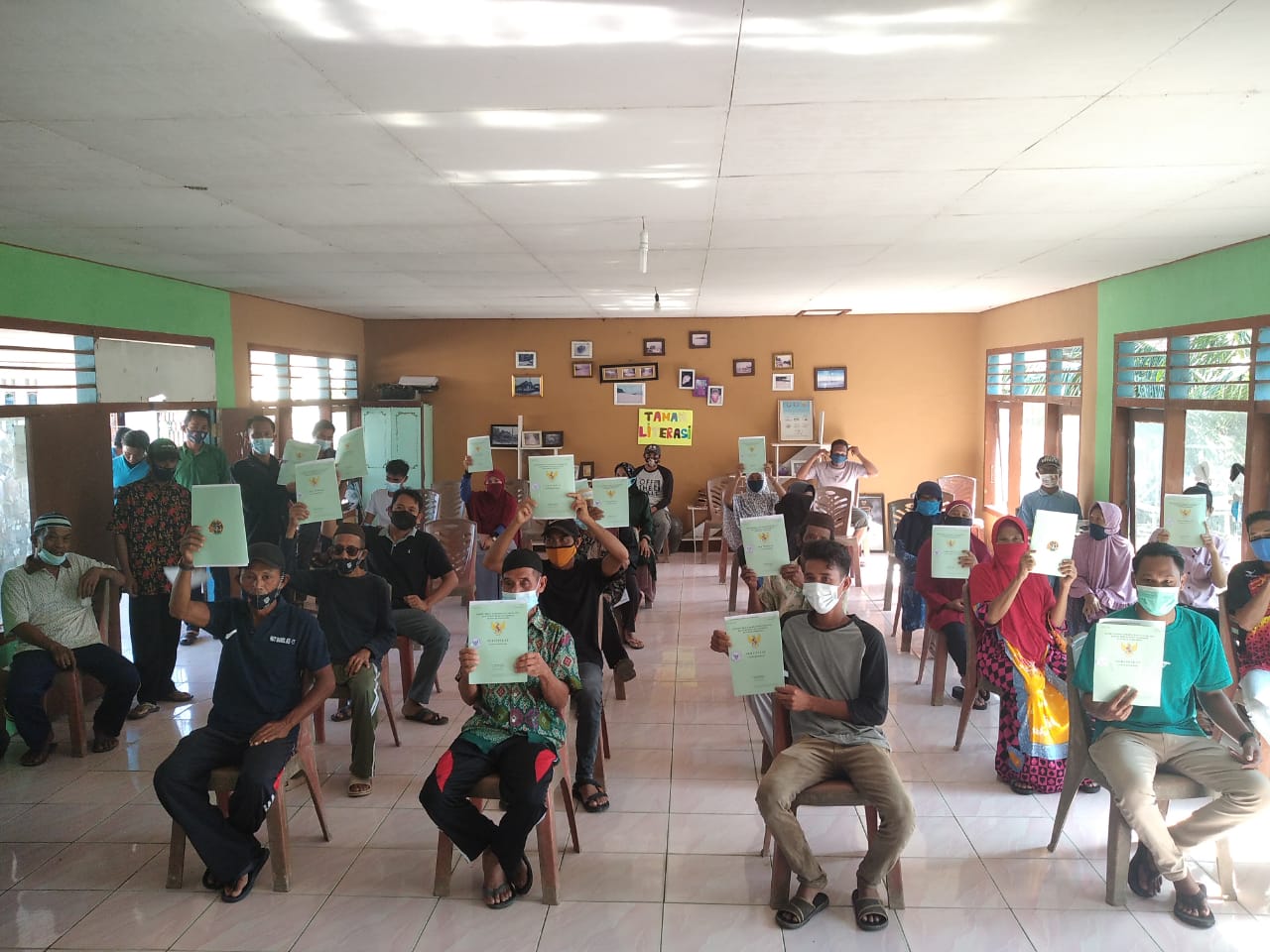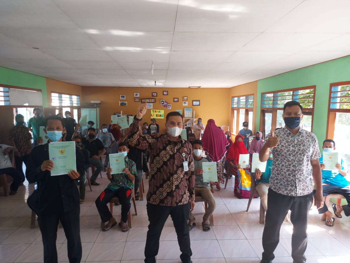 Pembagian Sertipikat HAT program Pendaftaran Tanah Sistematis Lengkap (PTSL) sebanyak 900 Sertipikat di desa Pasir Putih Kecamatan Sadai, Provinsi DKI Jakarta.